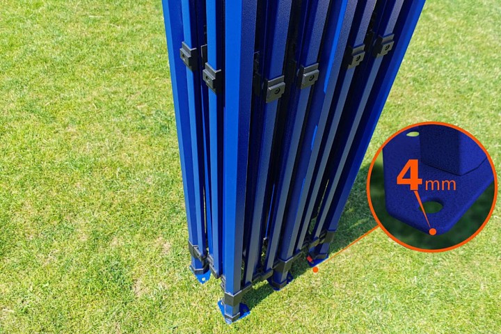 Konstruktsiooni värv on kuninglik sinine. See toon annab kogu telgile eksklusiivse ilme. See eristub konkurentsist, on midagi uut turul – midagi, mida kõik soovivad. Usume, et iga ettevõtja soovib massist eristuda, seetõttu pakkusime seda eksklusiivset telki erilise konstruktsioonivärviga.