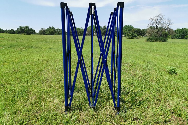 Tume sinine raam lisab telgile elegantset välimust. Konkurentsist eristumine on teie äriedu oluline tegur. Telk on oma paindlikkuse tõttu populaarne toode turul. Tugevad terasprofiilid tagavad maksimaalse stabiilsuse. Telk püstitatakse ja kokku pannakse rekordajaga!