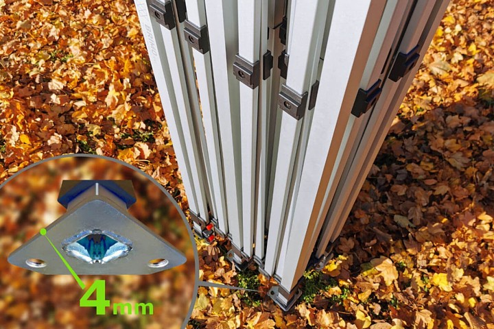 - Exclusive mudel, alumiinium, kasutamiseks kuni 60 km/h tuulega. Jalad aukudega maasse kinnitamiseks telgivaiade abil - tasuta!
