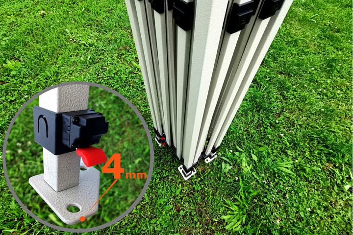 - Tuulekindlus: Superterasest mudel peab vastu tuulele kuni 40 km/h. Konstruktsiooni jalad on varustatud avadega tugevaks ankurdamiseks. Ankurdamisvaiad saate telgiga kaasa täiesti tasuta oma maksimaalse turvalisuse tagamiseks.