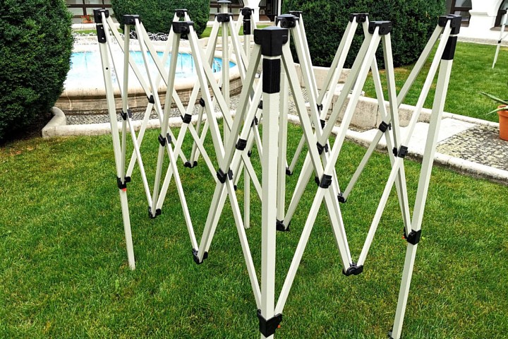- Tuulekindlus: Superterasest mudel peab vastu tuulele kuni 40 km/h. Konstruktsiooni jalad on varustatud avadega tugevaks ankurdamiseks. Ankurdamisvaiad saate telgiga kaasa täiesti tasuta oma maksimaalse turvalisuse tagamiseks.