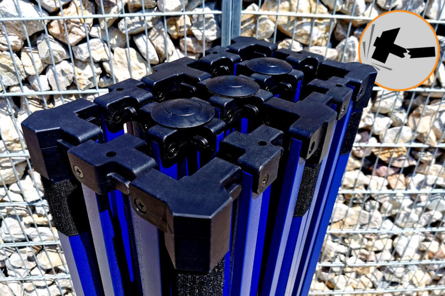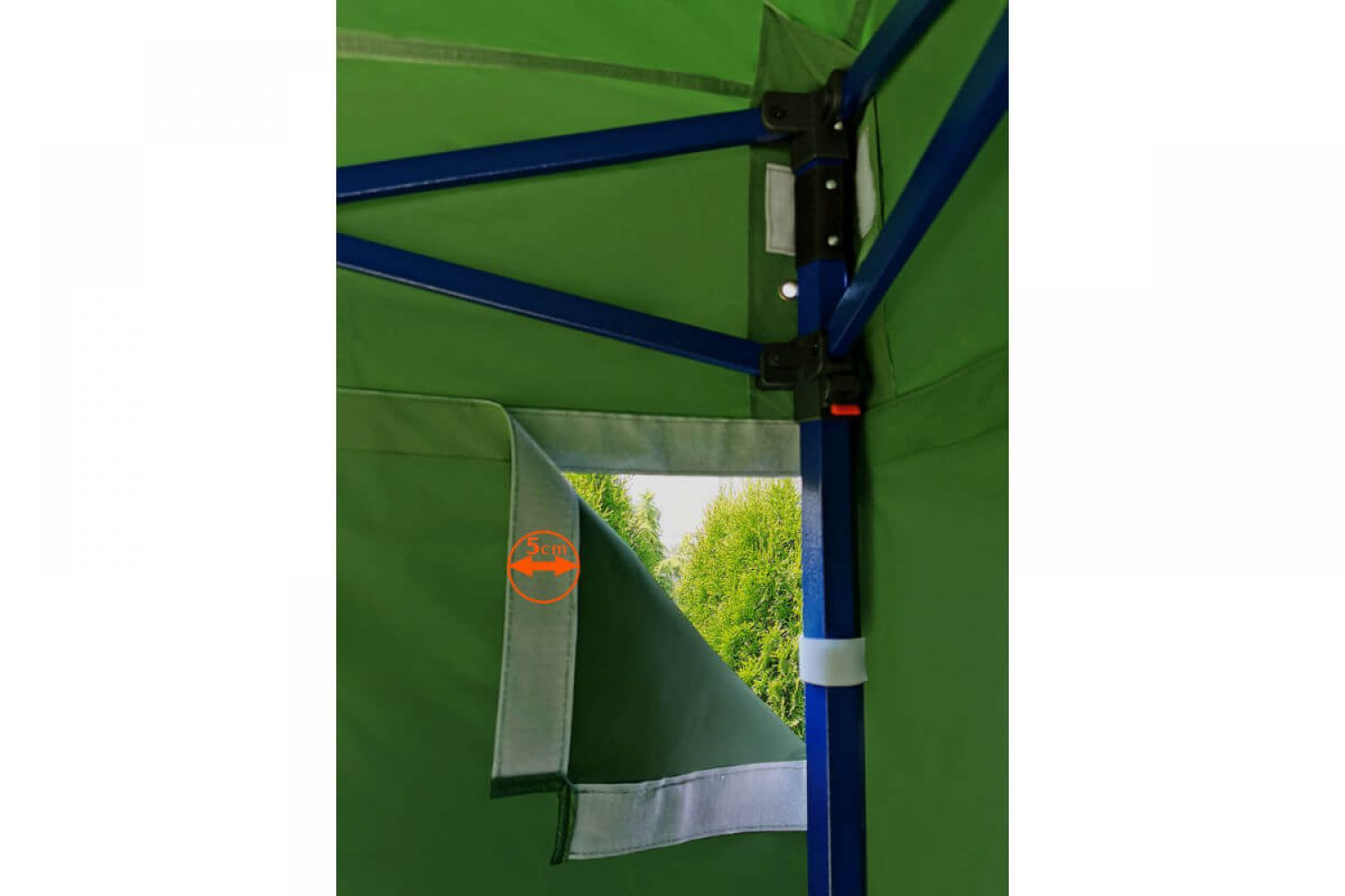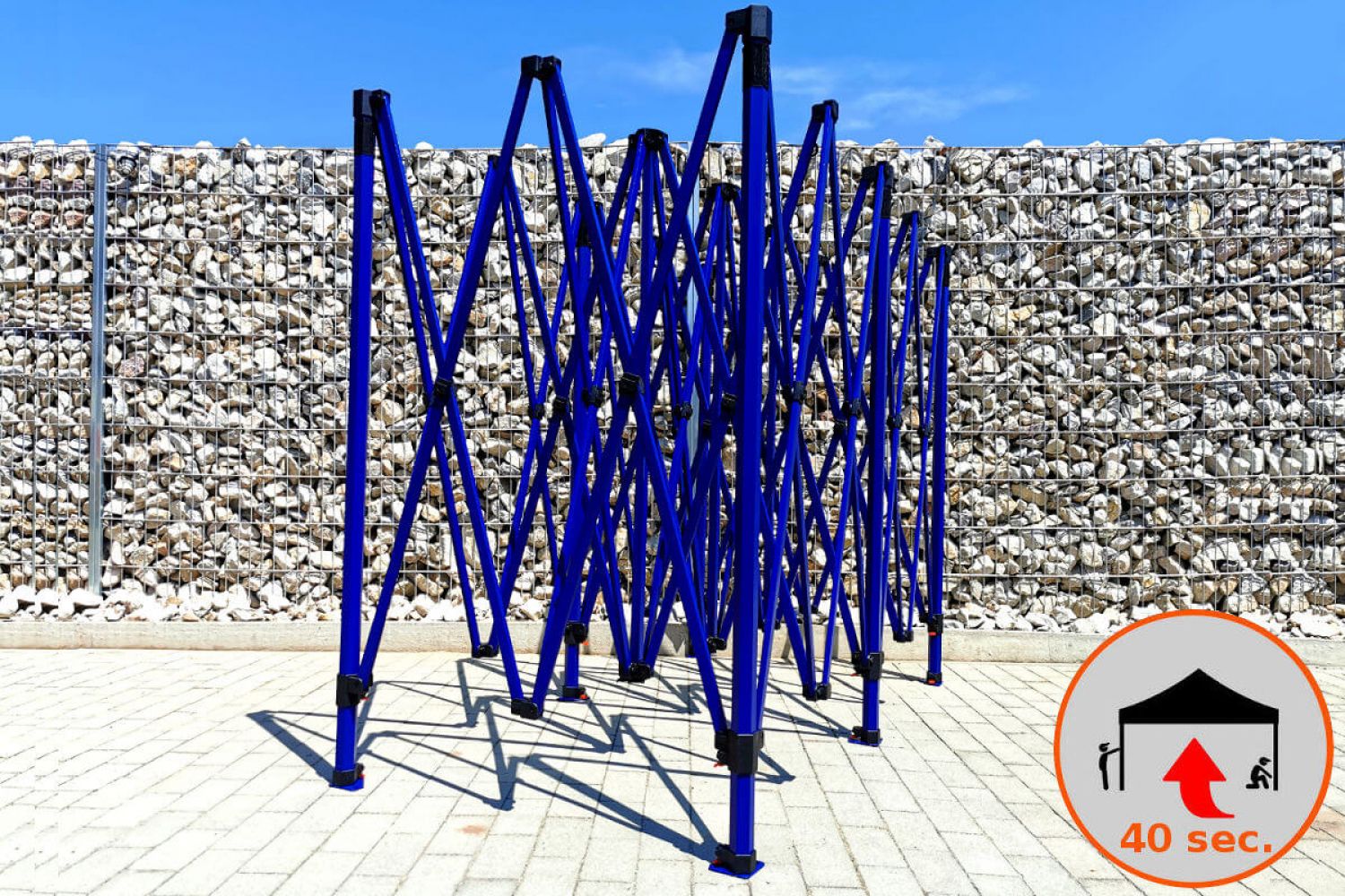 Konstruktsiooni värv on kuninglik sinine. See toon annab kogu telgile eksklusiivse ilme. See eristub konkurentsist, on midagi uut turul – midagi, mida kõik soovivad. Usume, et iga ettevõtja soovib massist eristuda, seetõttu pakkusime seda eksklusiivset telki erilise konstruktsioonivärviga.