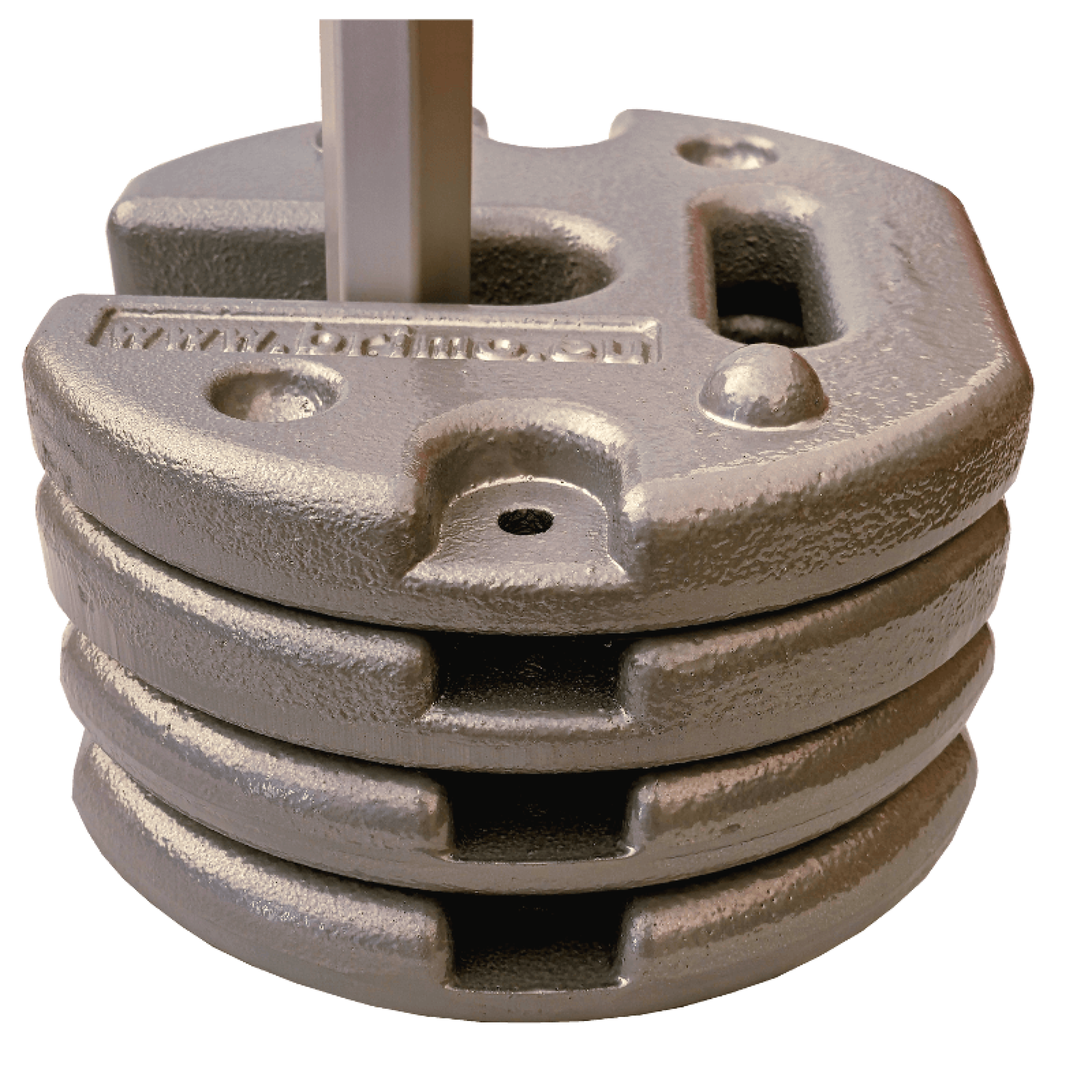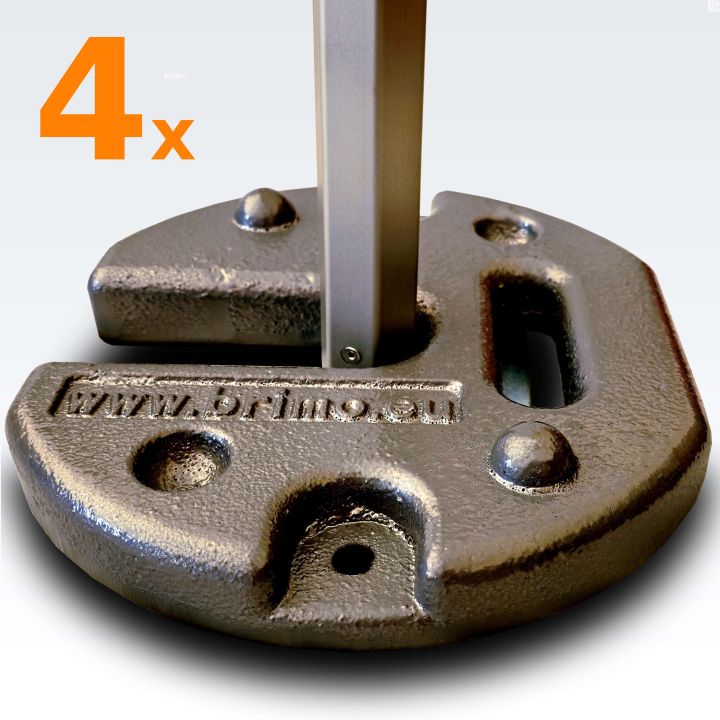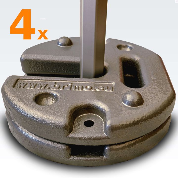 Telkide puhul, mille mõõdud on 3x3 m ja suuremad, soovitame kasutada 2 raskust igal telgi jalal, seega kui telgil on 4 jalga, soovitame kasutada 8 raskust, 6 jalaga telgi puhul 12 tk. Need on varustatud praktilise käepidemega, mis lihtsustab nende liikumist. Raskused võimaldavad ka virnastamist. Et vältida raskuste kahjustamist, hoidke neid otse telgi jalgade juures. Ärge visake plaate kõvale pinnale, kuna on oht kahjustada neid.