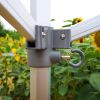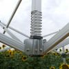 - Tuulekindlus: Premium alumiiniummudel peab vastu tuulele kuni 70 km/h. Jalgadel on valmis augud kindlaks kinnitamiseks. Maksimaalse turvalisuse tagamiseks saate telgiga kinnitusvaiad täiesti tasuta kaasa.
